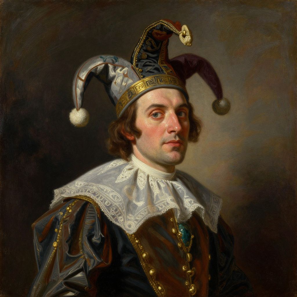 Put your face on a royal portrait, Victorian royal outfit with military medals and epaulettes, high collar with decorative buttons, steam-era palace interior with chandeliers, moody atmospheric lighting, realistic oil painting with subtle color highlights and deep shadows.