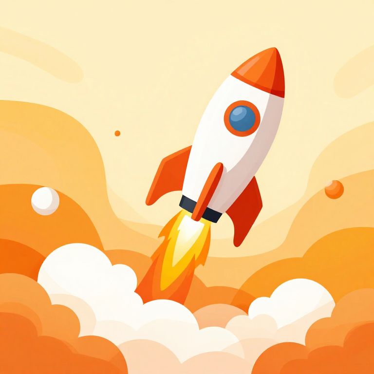 Take off logo symbolizing launch and innovation, rocket taking off with flames and smoke, abstract geometric shapes, vivid orange and yellow hues, tech startup brand identity, contemporary and bold illustration