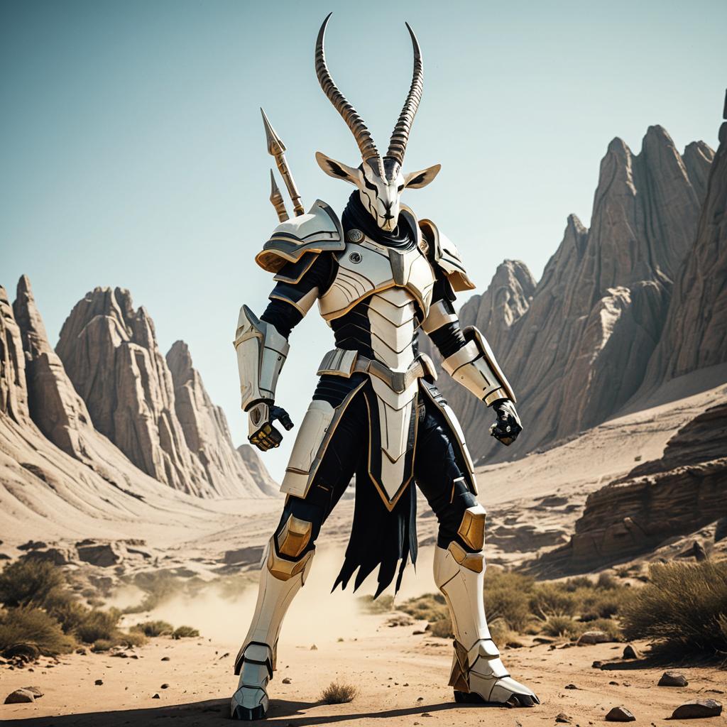 Ivory Gazelle Warrior in Alien Desert Landscape