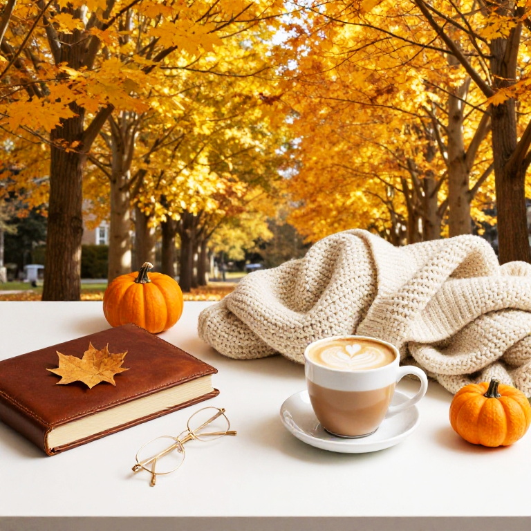Enchanting Hashanah evening with candles flickering softly on a decorated table, traditional fruits and challah, soft glowing lanterns, autumn forest backdrop with golden leaves, peaceful and reflective atmosphere, focus on textures and warm inviting light