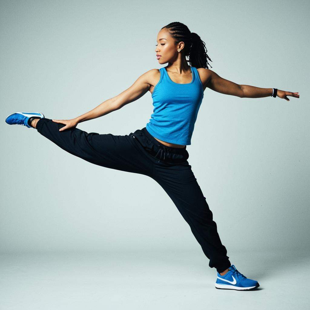 Short Hip Hop, a woman in a blue tank top and black pants doing a dance pose