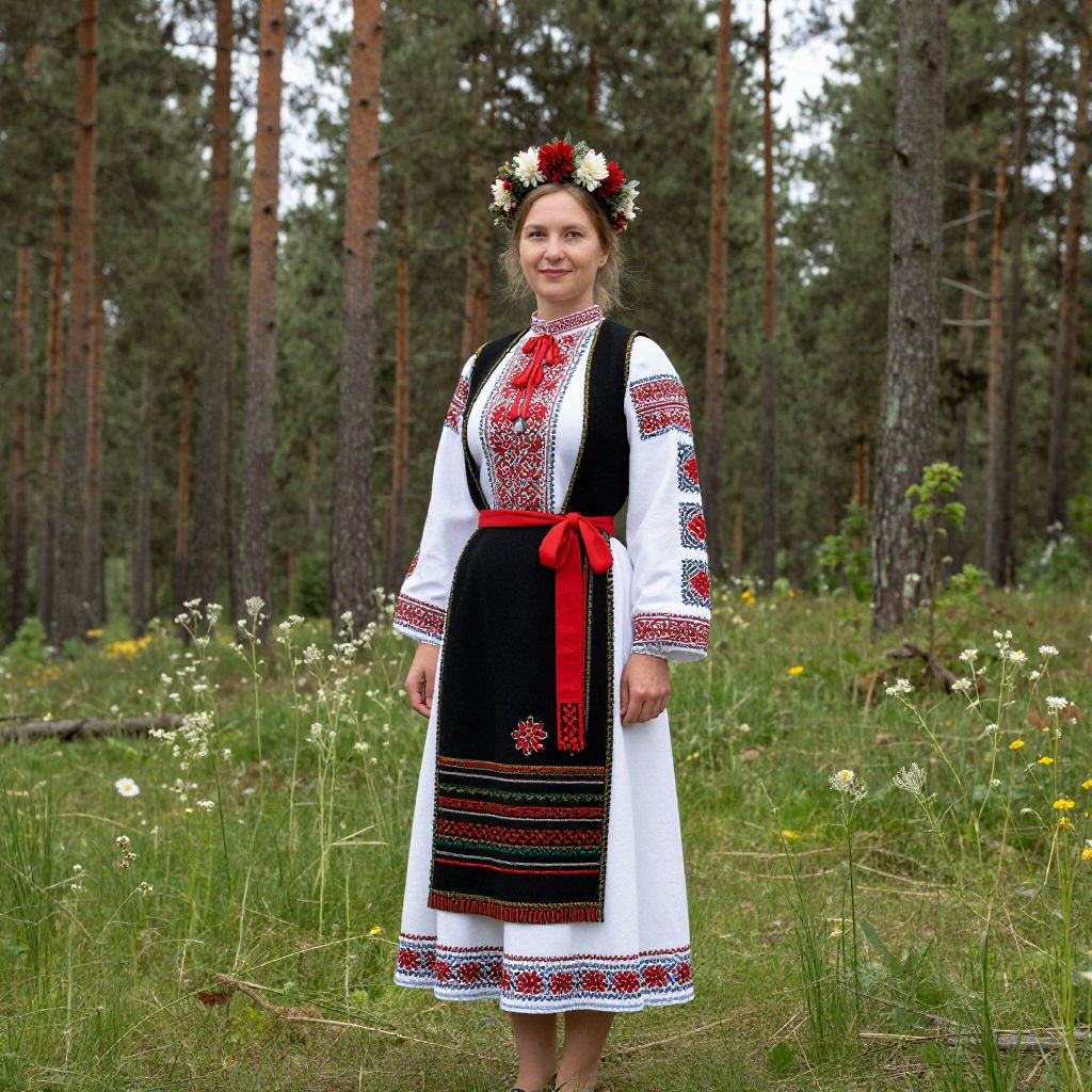 Slovak Folk Costume in Forest