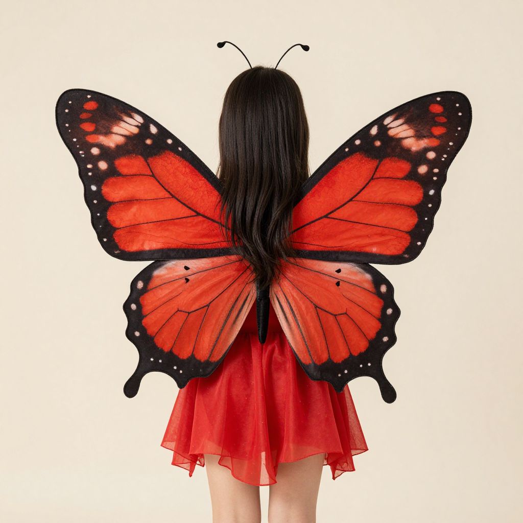 Girl Wearing Red Butterfly Wings