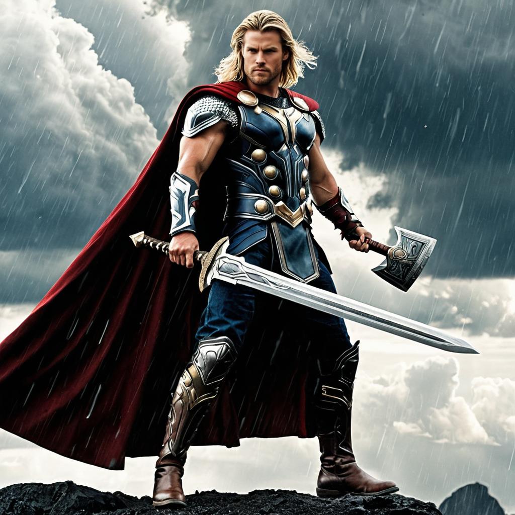 Man in Thor Costume with Horned Helmet
