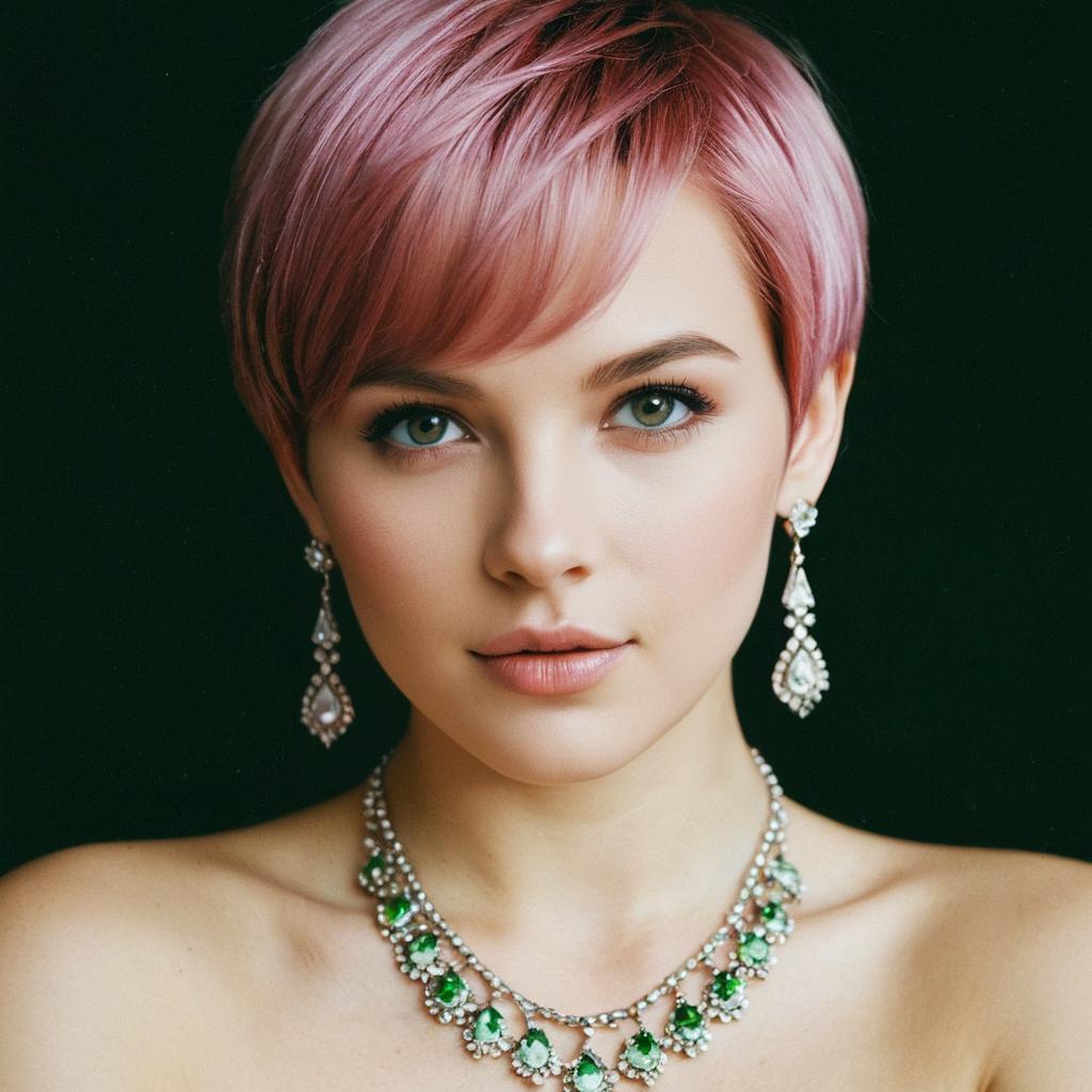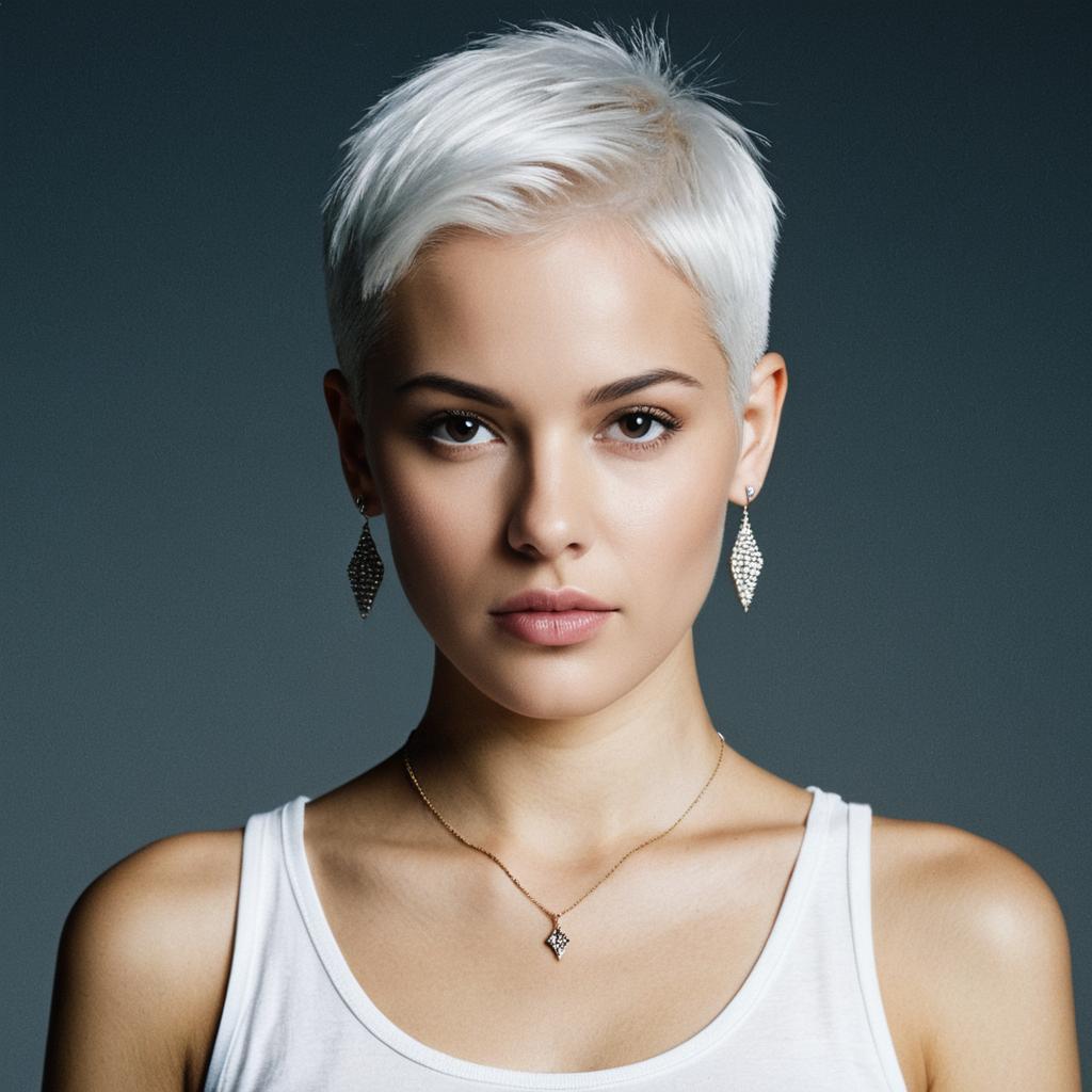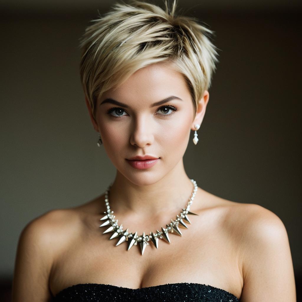 Blonde Woman with Spiky Pixie Cut and Jewelry