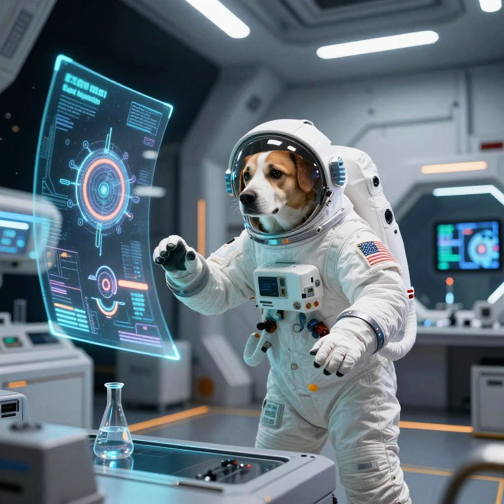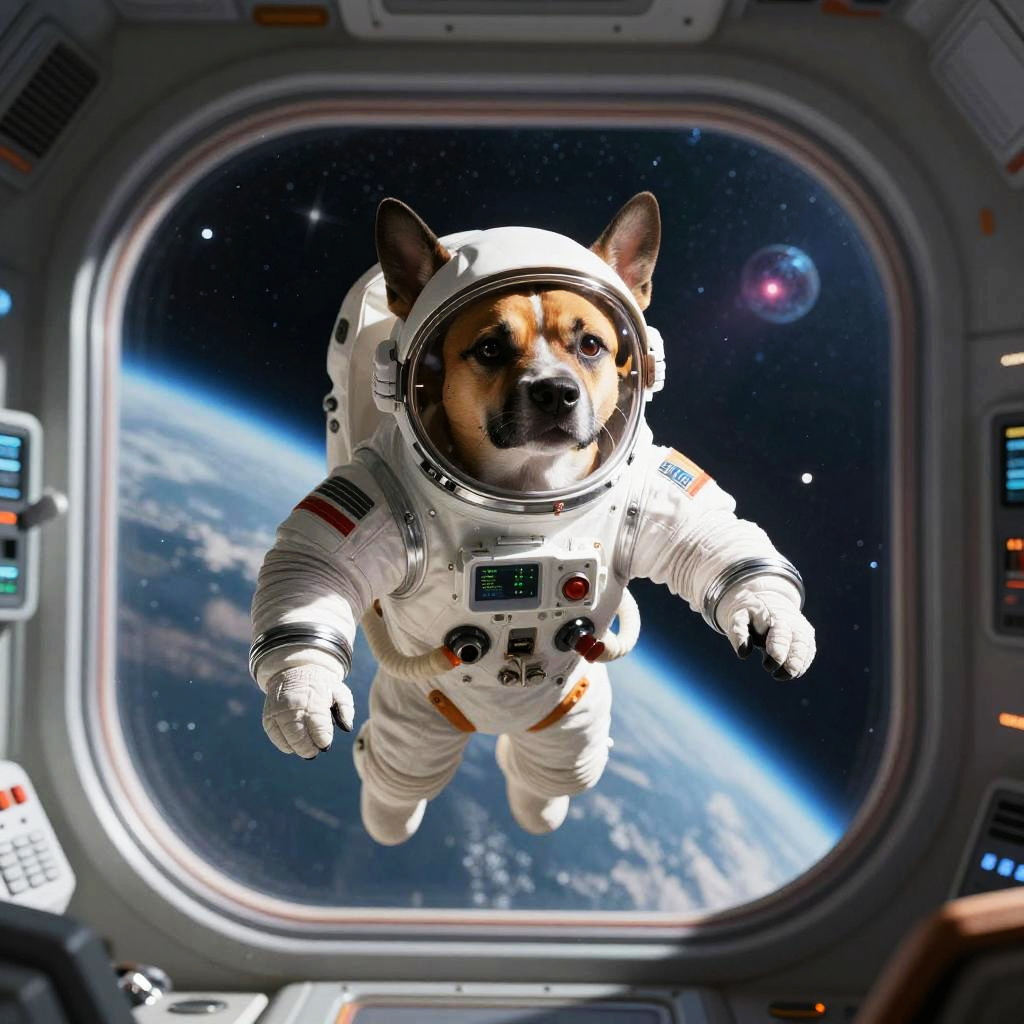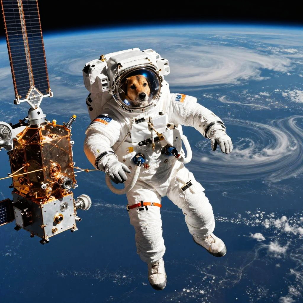 Dog Spacewalk Repairing Satellite