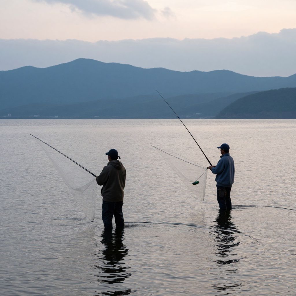 Fishermen Casting Nets in Tranquil Lake