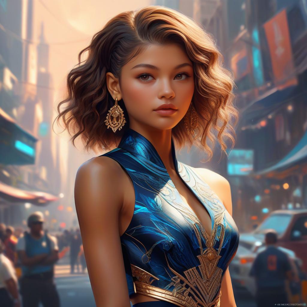Portrait of Zendaya wearing a low-cut tank top, elegant and intricate, highly detailed, digital painting, artstation, concept art, sharp focus, in the style of Ross Tran, Greg Rutkowski