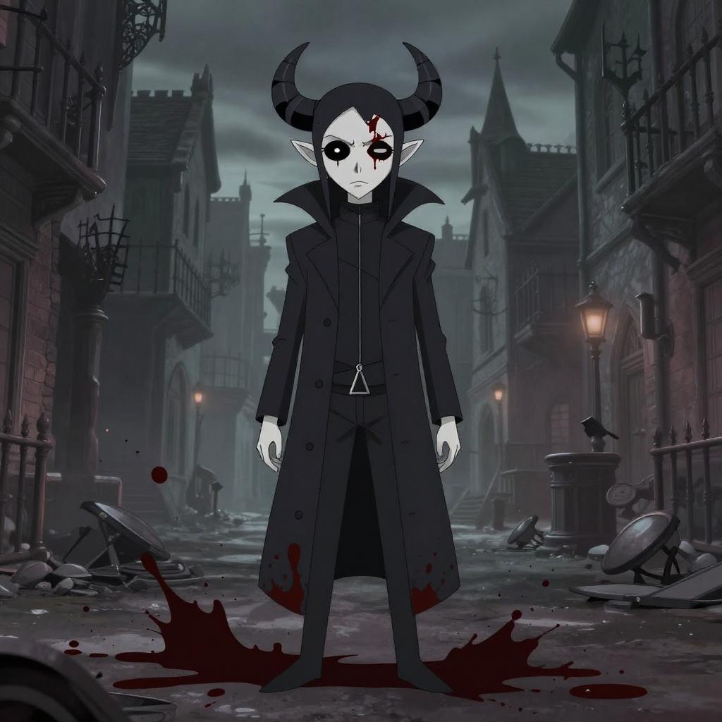 Bloodborne, Gothic city streets, blood splatter, hades-8500, realistic, cartoon, comic, dark outlines