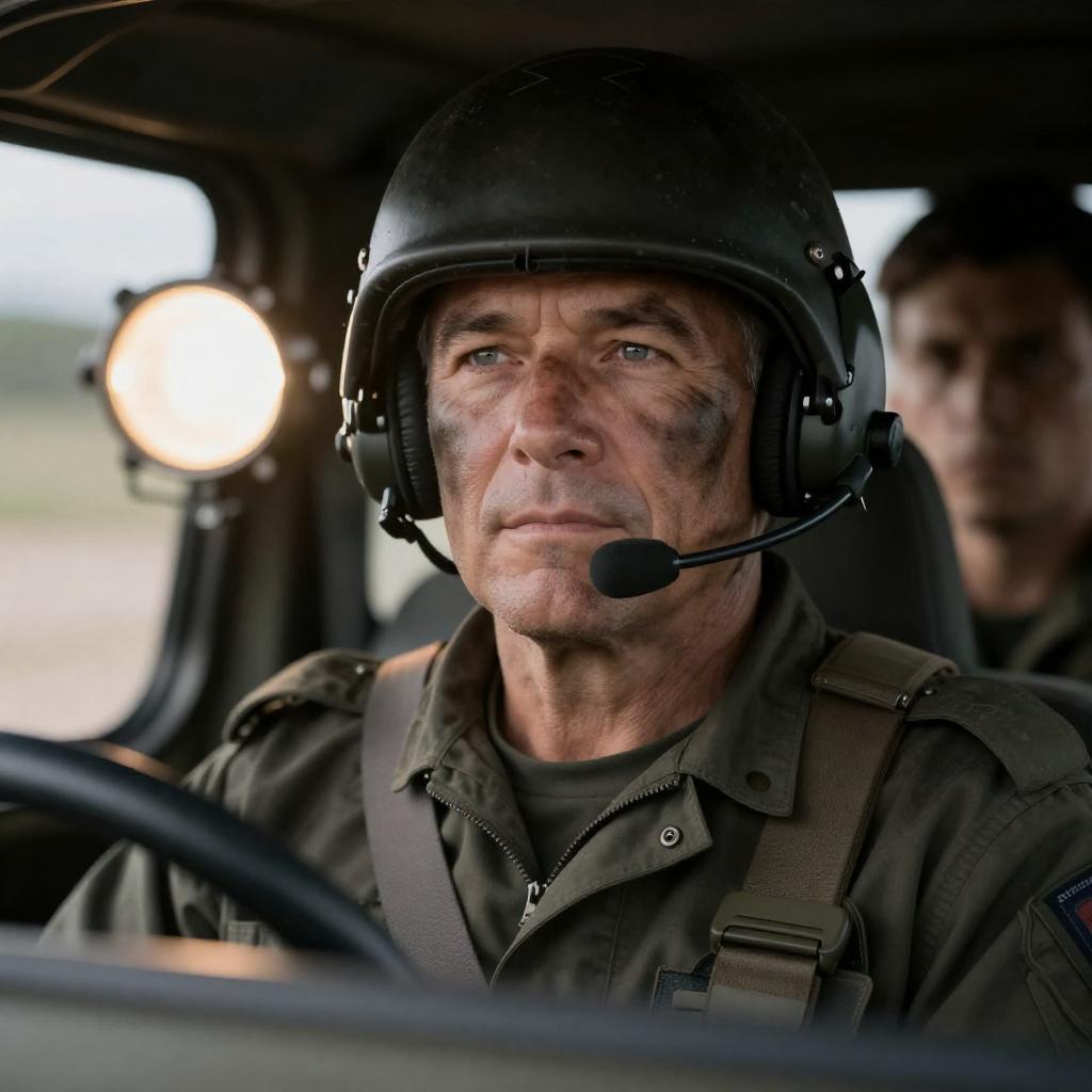 Serious Helmeted Pilot in Spacecraft