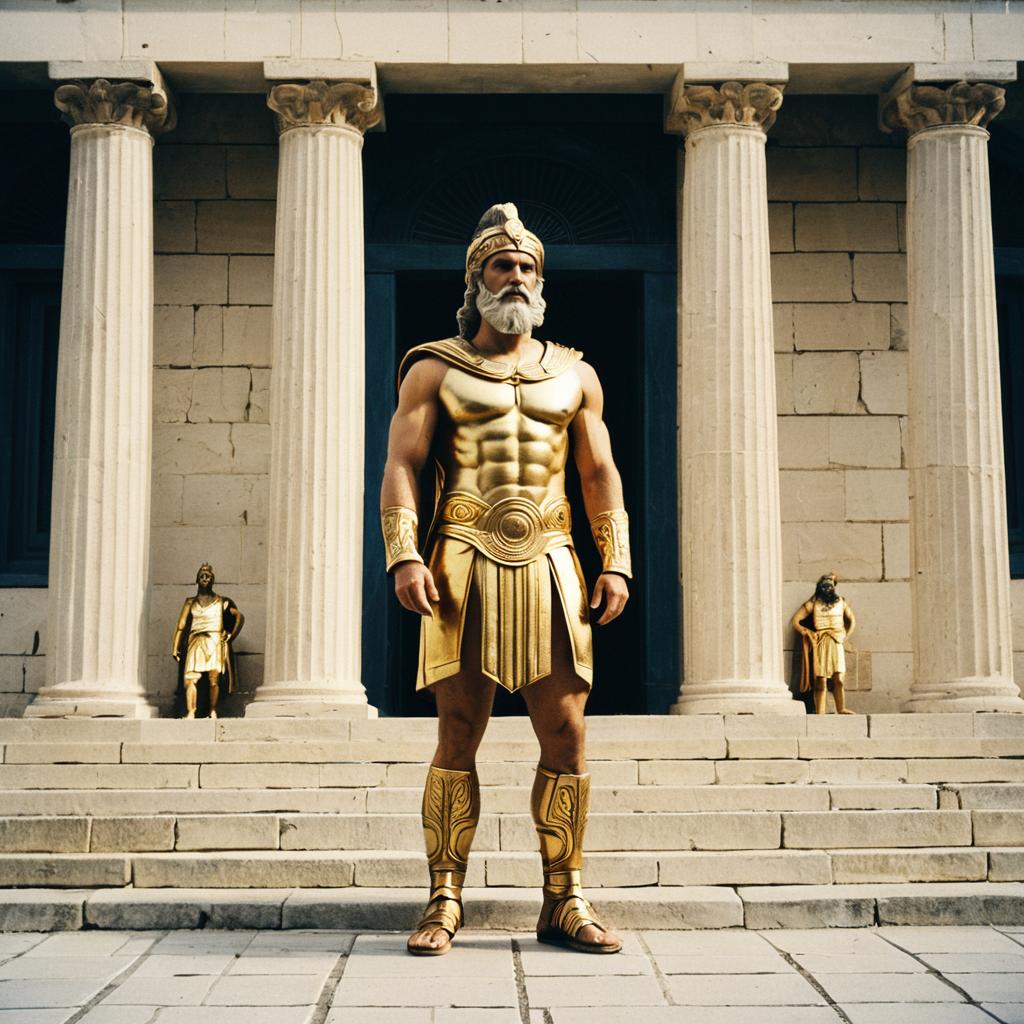 Golden Greek God by Ancient Temple