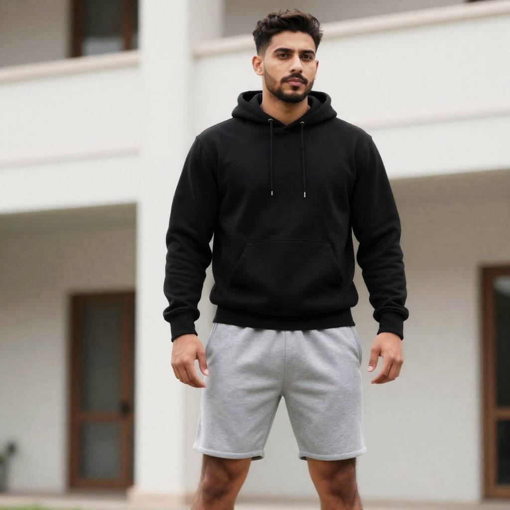 Man in Hoodie and Shorts