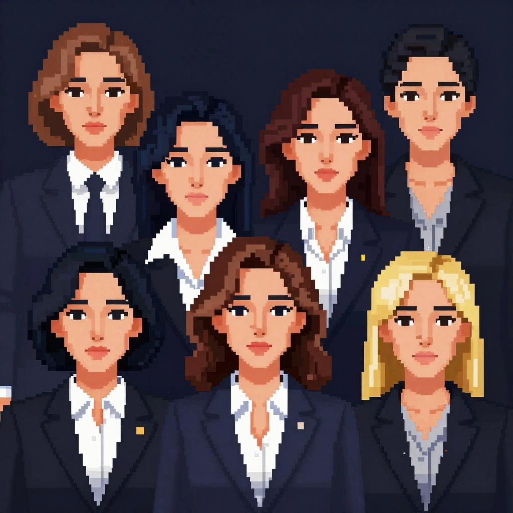 Realistic photo.Create a series of female portraits of powerful corporate leaders, using pixel art with cyberpunk style. realistic photo