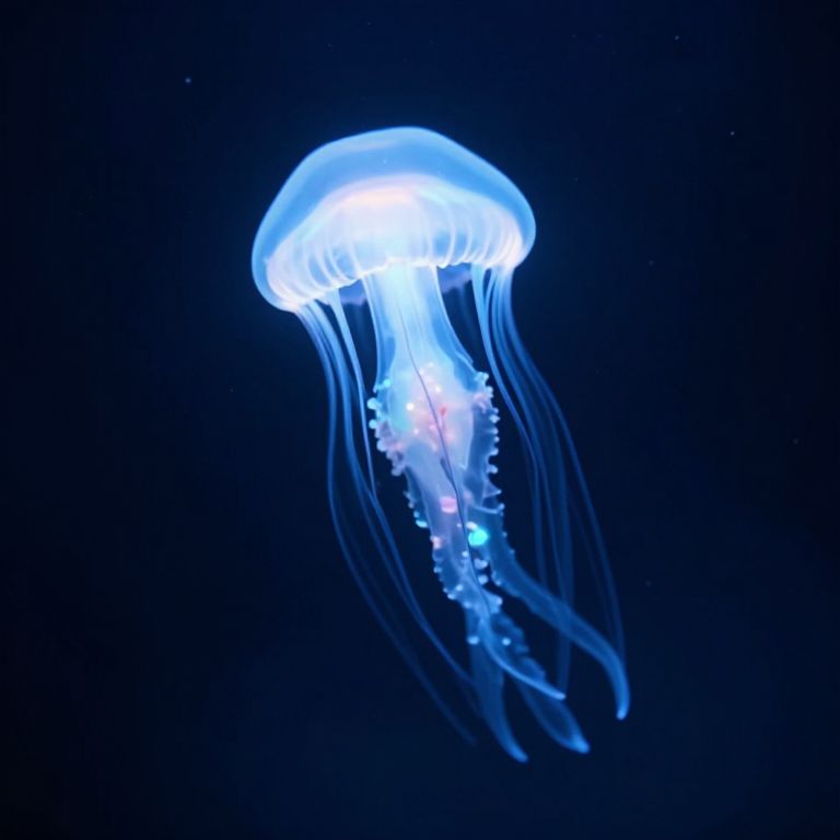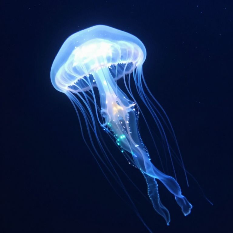 Colossal jellyfish, composed of luminous moonlight, drifts gracefully through the dark expanse, its translucent bell pulsating with ethereal cityscapes that shimmer within its iridescent form.