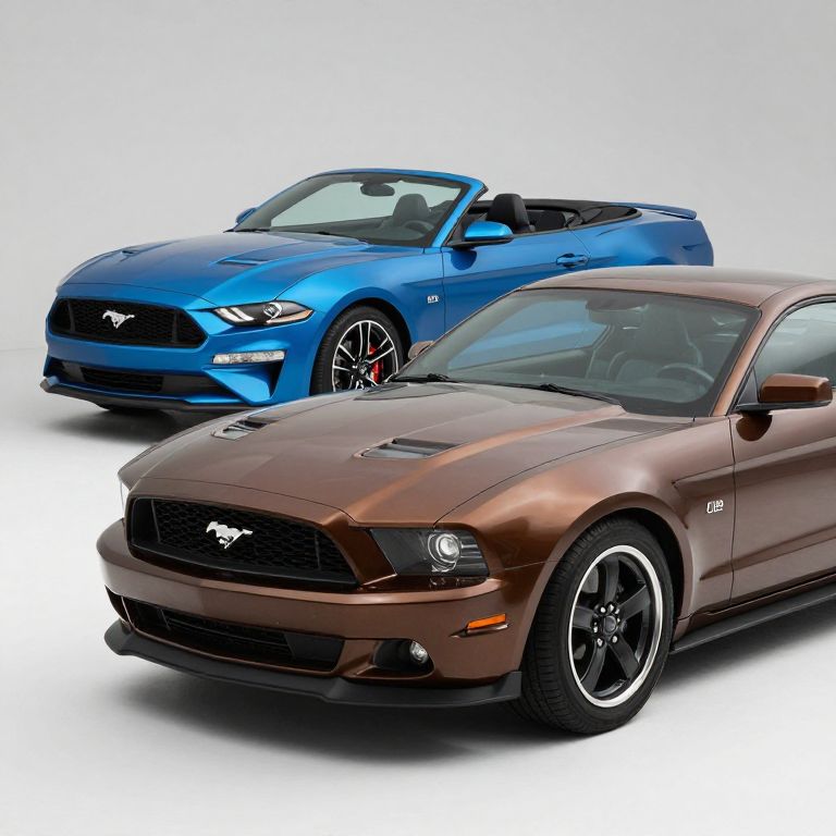 Sleek Blue Convertible and Brown Coupe Mustangs