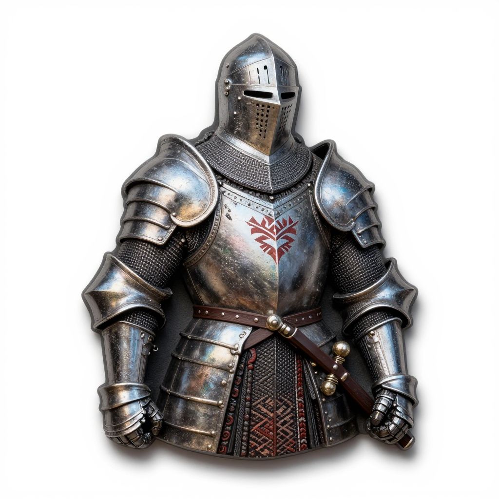 Line art trinket depicting a Knight - A heavily armored warrior skilled in combat and sworn to protect the realm. Richard Wright, natural, shimmering, vibrant, gothic, rpg, 1400ad, ultra detailed, detailed, immersive, reminiscent of high fantasy RPG games, HD, masterpiece, best quality, hyper detailed, super realistic, perfect face, perfect hands, award-winning, professional, breathtaking, linquiverasnowy Escarpmentunusual weathertribal style . indigenous, ethnic, traditional patterns, bold, natural colors, highly detailed