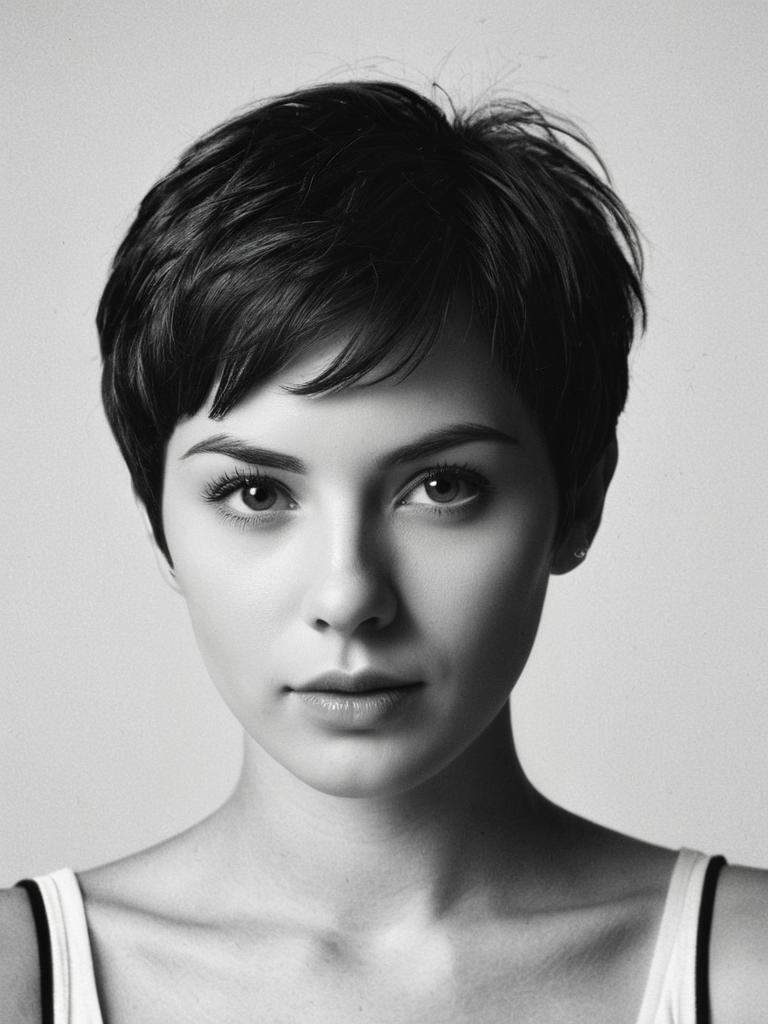 Woman with Pixie Haircut, photorealistic detailed studio portrait