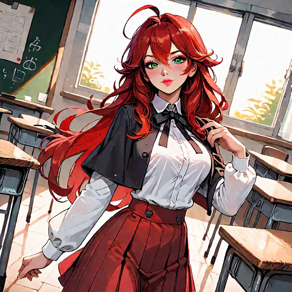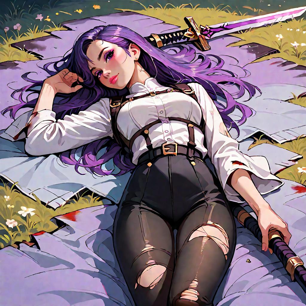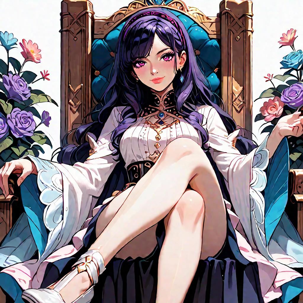 Anime Girl with Purple Hair and Black High-Waist Skirt