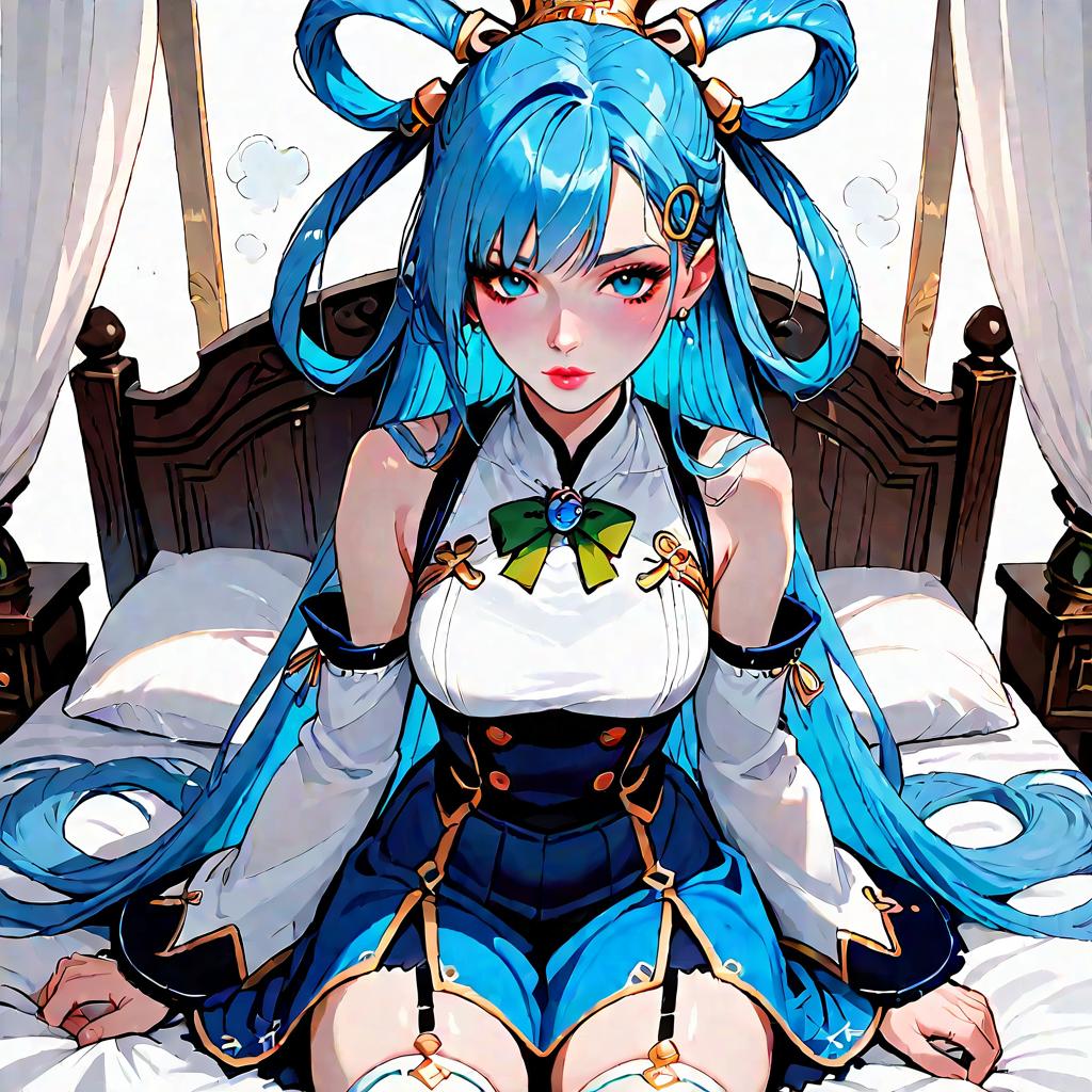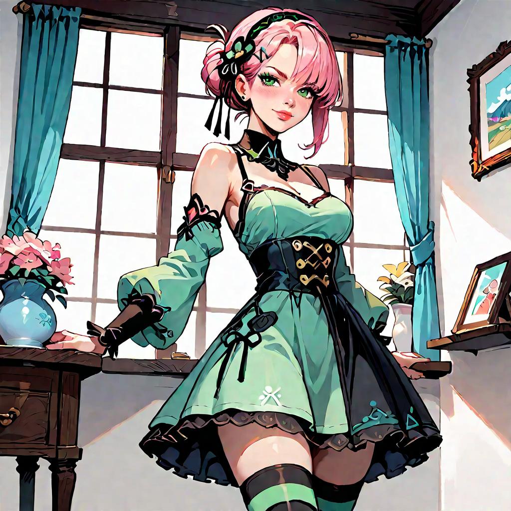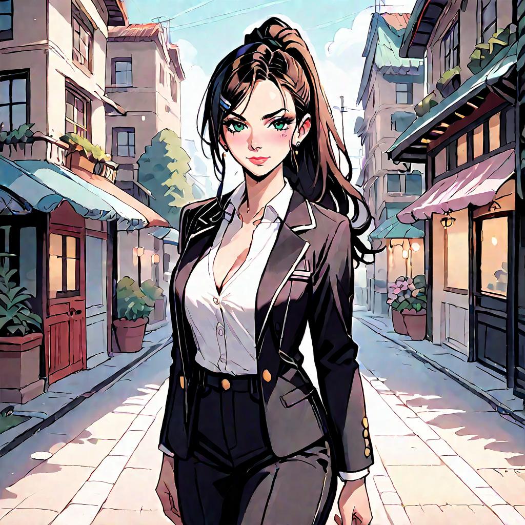 Anime Girl with Purple Hair and Black High-Waist Skirt