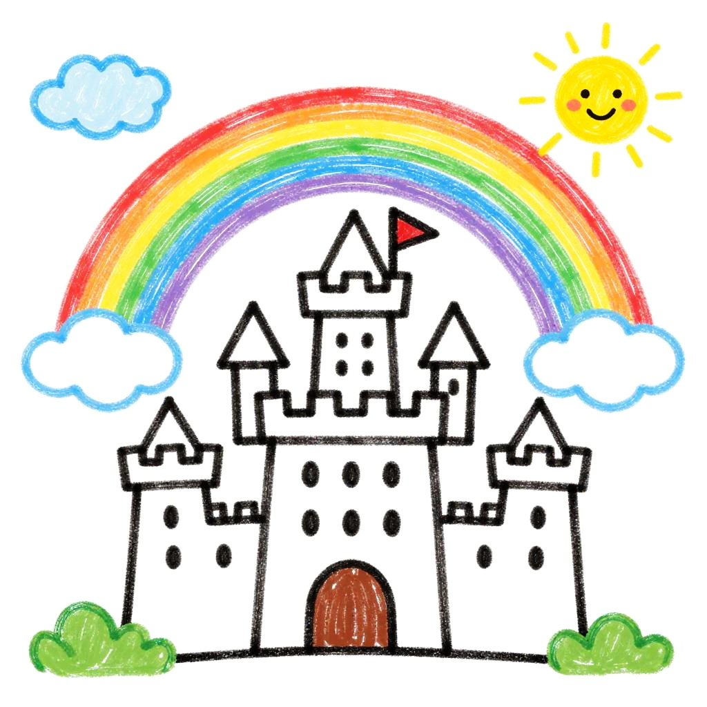 Colorful embroidered rainbow with five vibrant stripes (red, orange, yellow, green, blue) and two white clouds at the bottom.