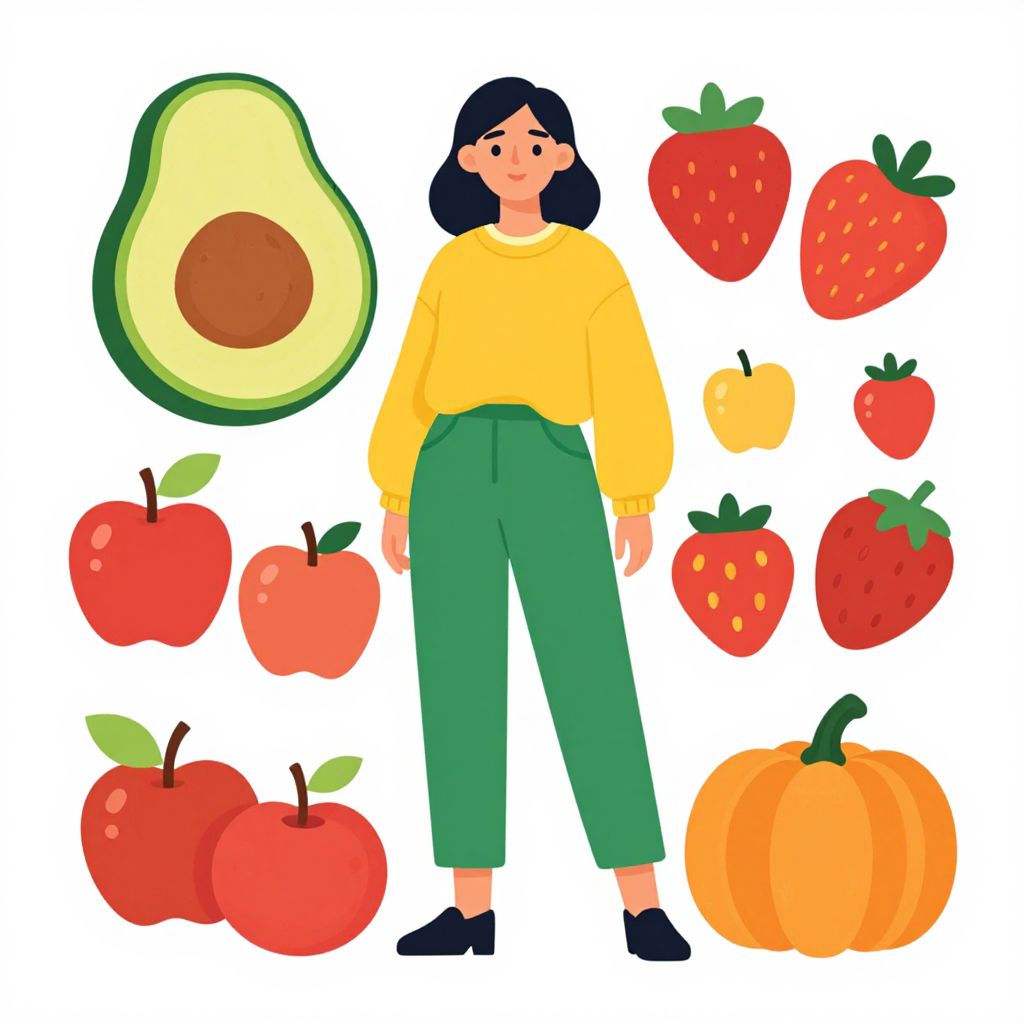Woman with Fruits and Juice Vector