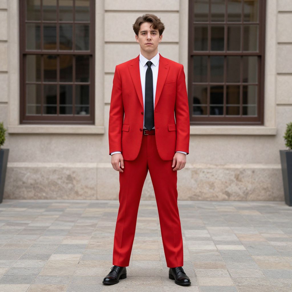 Man in Red Suit by Building