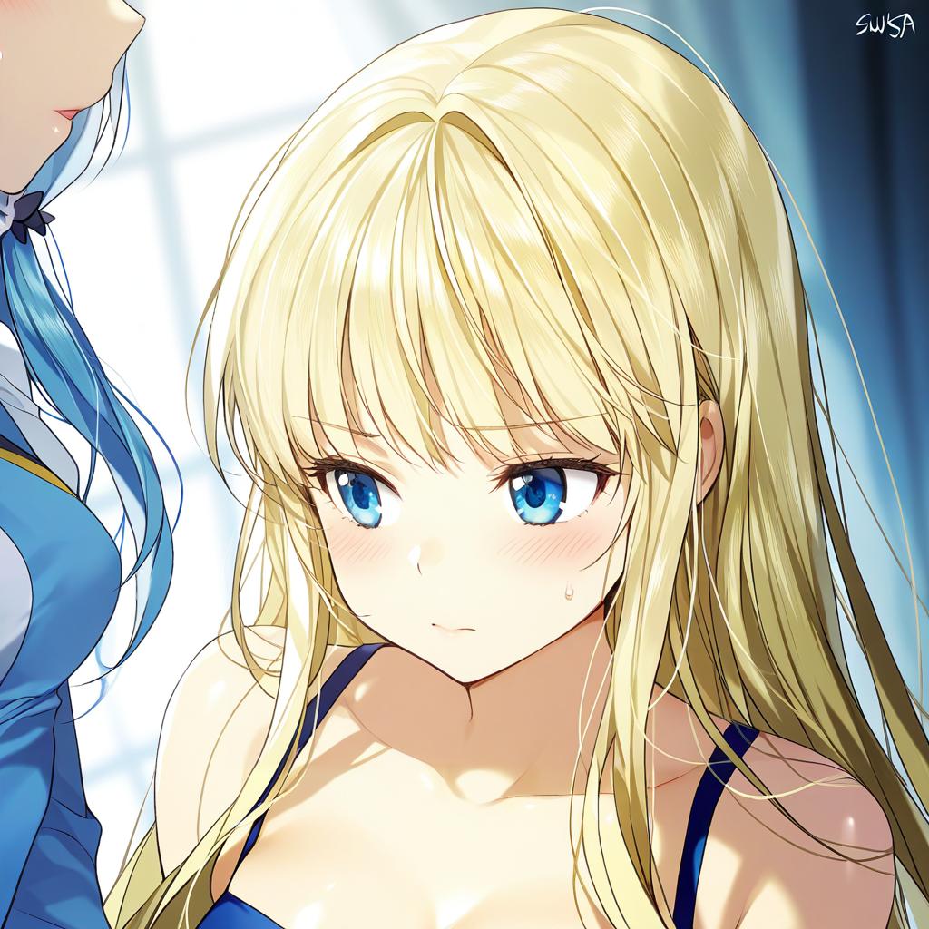 Ace trainer (pokemon), pokemon, 1girl, long hair, blonde hair, blue hair, by artist akitsuki karasu, leet