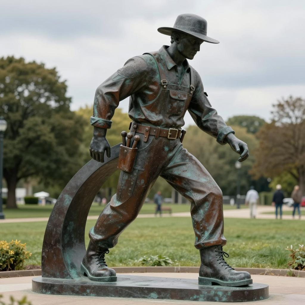 Dynamic Bronze Sculpture of Worker in Overalls