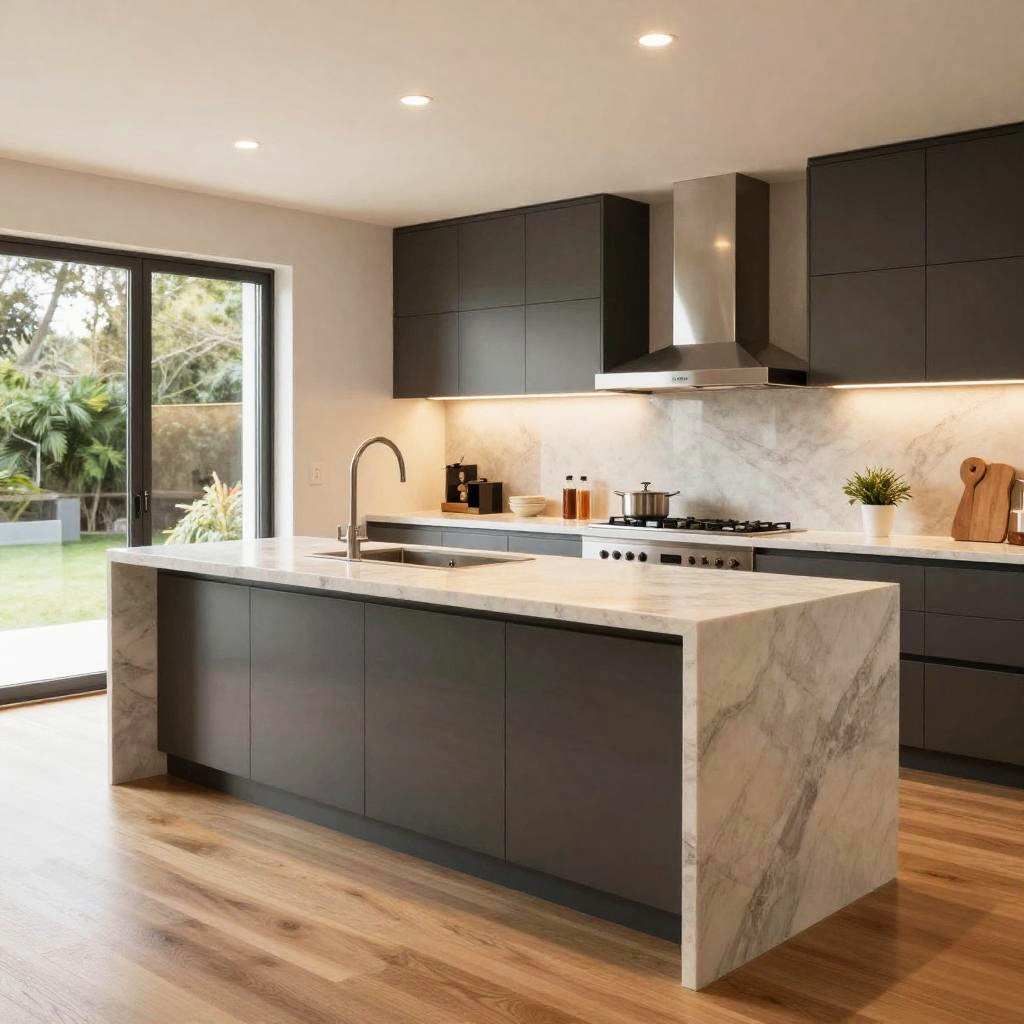 Modern Kitchen Island with Marble Countertop