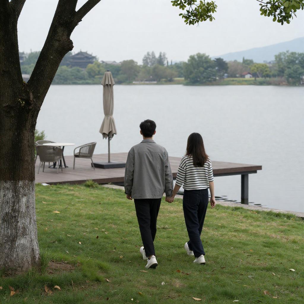 Sunlit Couple in Ancient Temple Courtyard