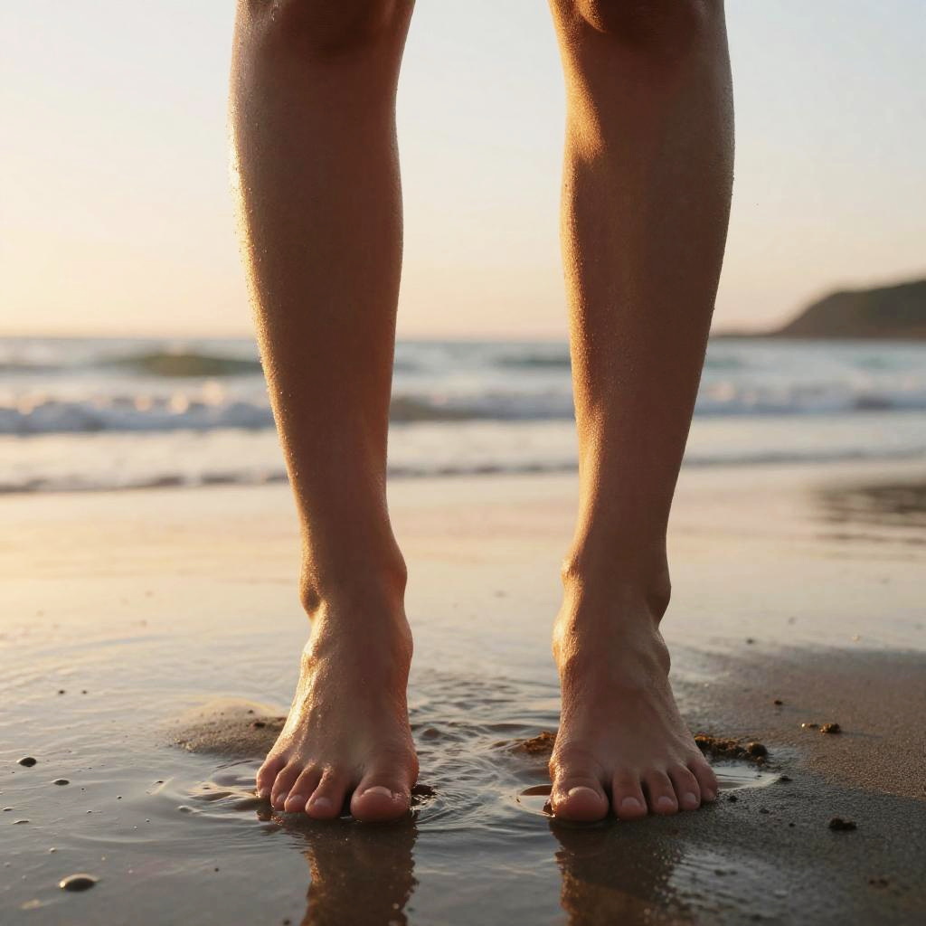 Dora feet walking along a sandy beach at sunset, footprints trailing behind, soft waves lapping at the shore, vibrant orange and pink sky, delicate toes sinking into the warm sand, tropical paradise ambiance, highly detailed and colorful.