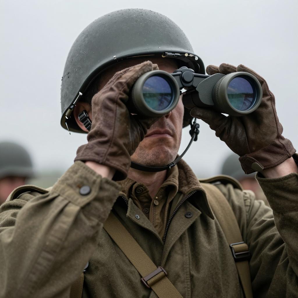 Photograph of a battlefield scene. Three soldiers in green uniforms and metal helmets are in the foreground, holding rifles. One soldier is talking into a radio. A damaged tank with a long barrel is in the center, partially obscured by debris. Smoke rises from the background. The tank's structure is bent and broken, with a soldier on top. Trees and a hilly landscape are in the background.