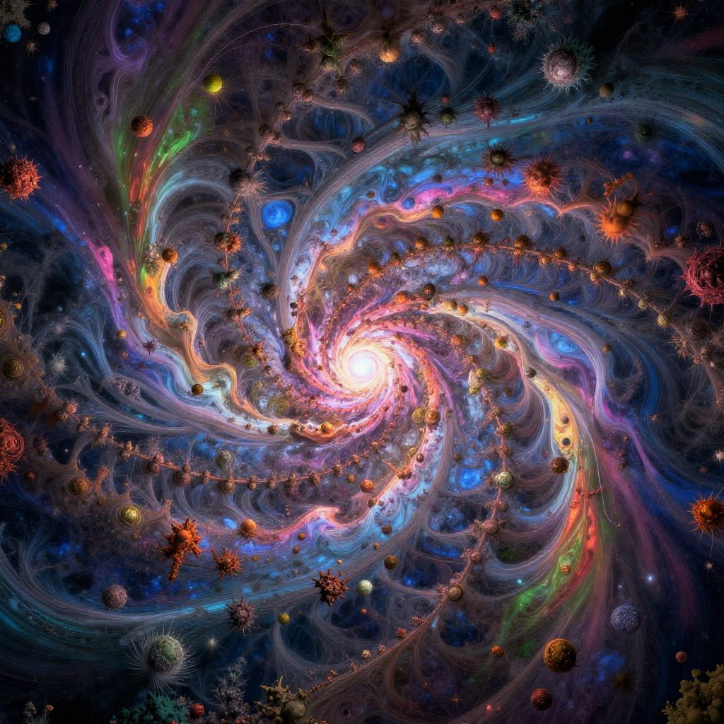 Stable diffusion super resolution image showcasing intricate fractal patterns morphing smoothly into hyper-detailed nature scenes, vibrant colors with crystal-clear sharpness, blending science and art in futuristic visual harmony.
