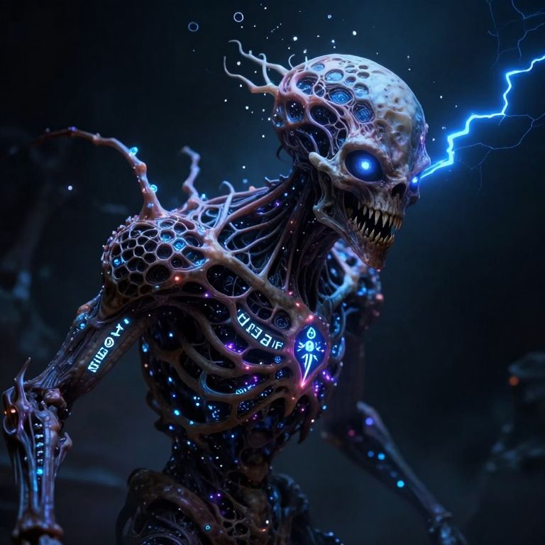 R3tun4L style, skelenecro, flat color two-toned in translucent DARK natural hues, cinematic lighting, hyperrealistic extreme close-up macro photography, 64-megapixel DSLR, A vibrant, action-packed anime scene in a sketch-like style with thick, bold lines, The focus is a close-up of a charming busty Long haired necromancer’s skull, engraved with glowing neon symbols that blend medieval magic and futuristic sci-fi, Her beautiful eyes blaze with orange flames, while her cracked bone structure reflects the neon hues of the environment, High collar Military parka, Small, illuminated circular lights float around her skull, giving him an ethereal, mysterious aura, The glowing runes on his bones pulse with energy, radiating a dark power, Atmospheric haze surrounds the scene, heightening the contrast between the deep blacks of the background and the eerie black lights, The intense aura swirling around him feels ready to explode with necromantic energy, creating a striking visual of raw emotion and supernatural power in this eerie, sci-fi fantasy setting