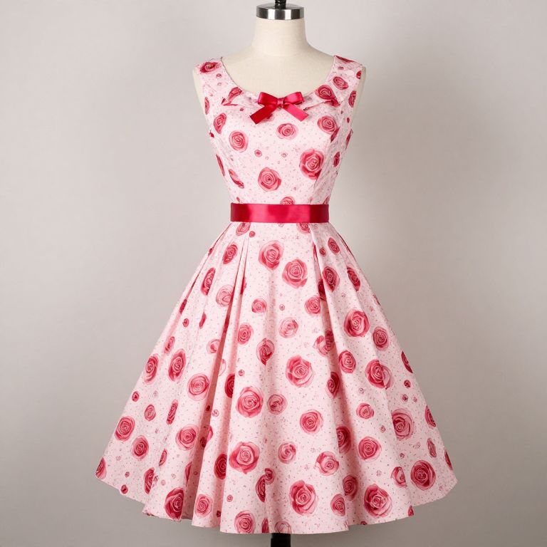 50s Lucille Tea Dress Hearts & Roses