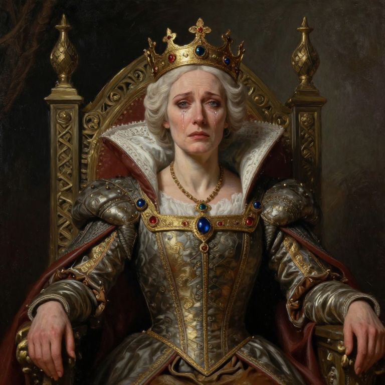 Weeping Medieval Queen on Throne