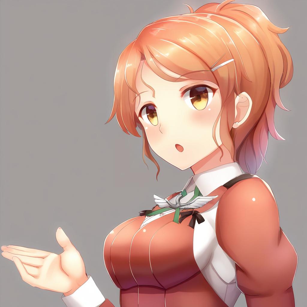 Apricot sakuraba, galaxy angel rune, 1girl, orange hair, short twintails, twintails, uniform, ribbon, long sleeves, by artist mo (kireinamo), animagine