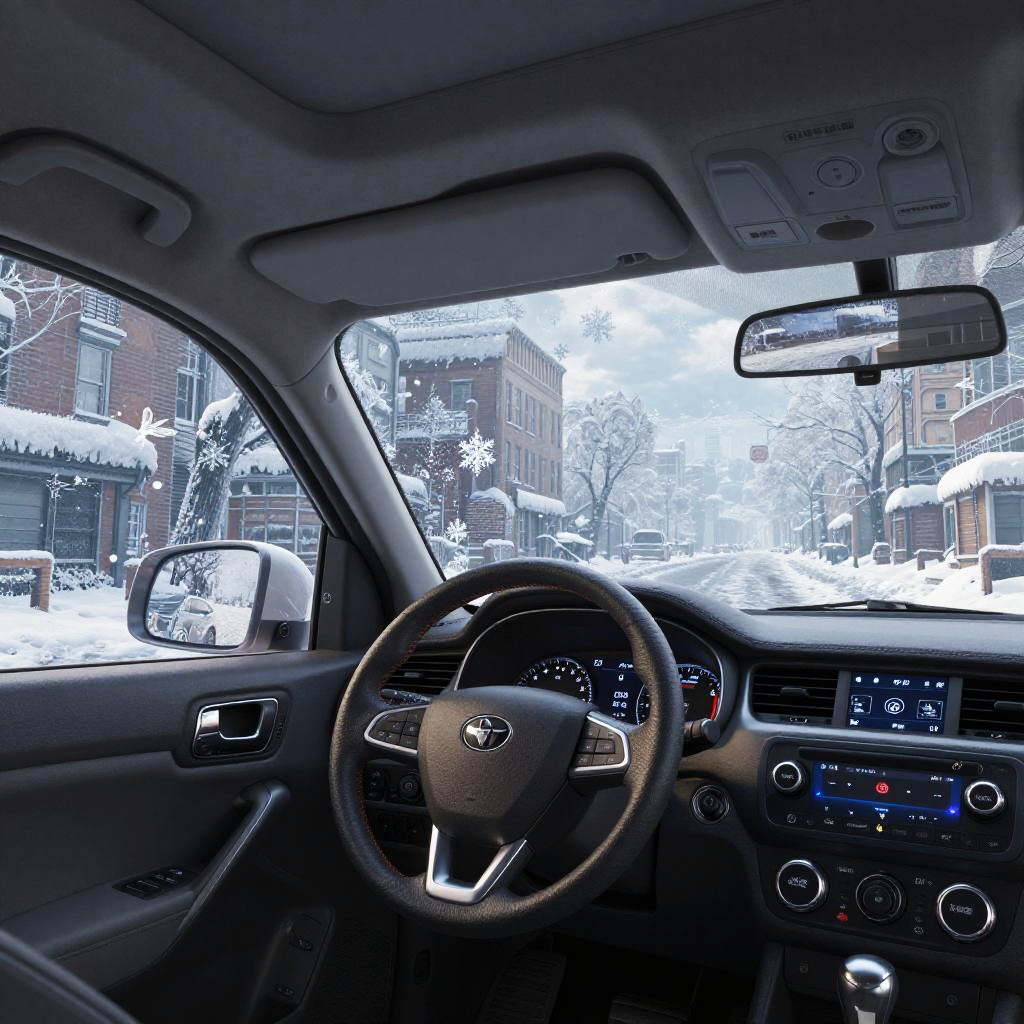 Style of (hoppagames:1.0), Car interior with (frosty urban view), (heated steering wheel), (digital speedometer), (audio controls), (cup holder), (seatbelt), (climate control), (GPS display), (rear camera), (crystal-like snowflakes on windows), (Low-angle perspective), (natural lighting), (Wide-angle lens capturing scenery), hidden objects games, video game concept art, (8K Unity wallpaper), fine details, award-winning image, highly detailed, 16k, cinematic perspective, ((video game environment concept art style)), pretty colors, cinematic environment