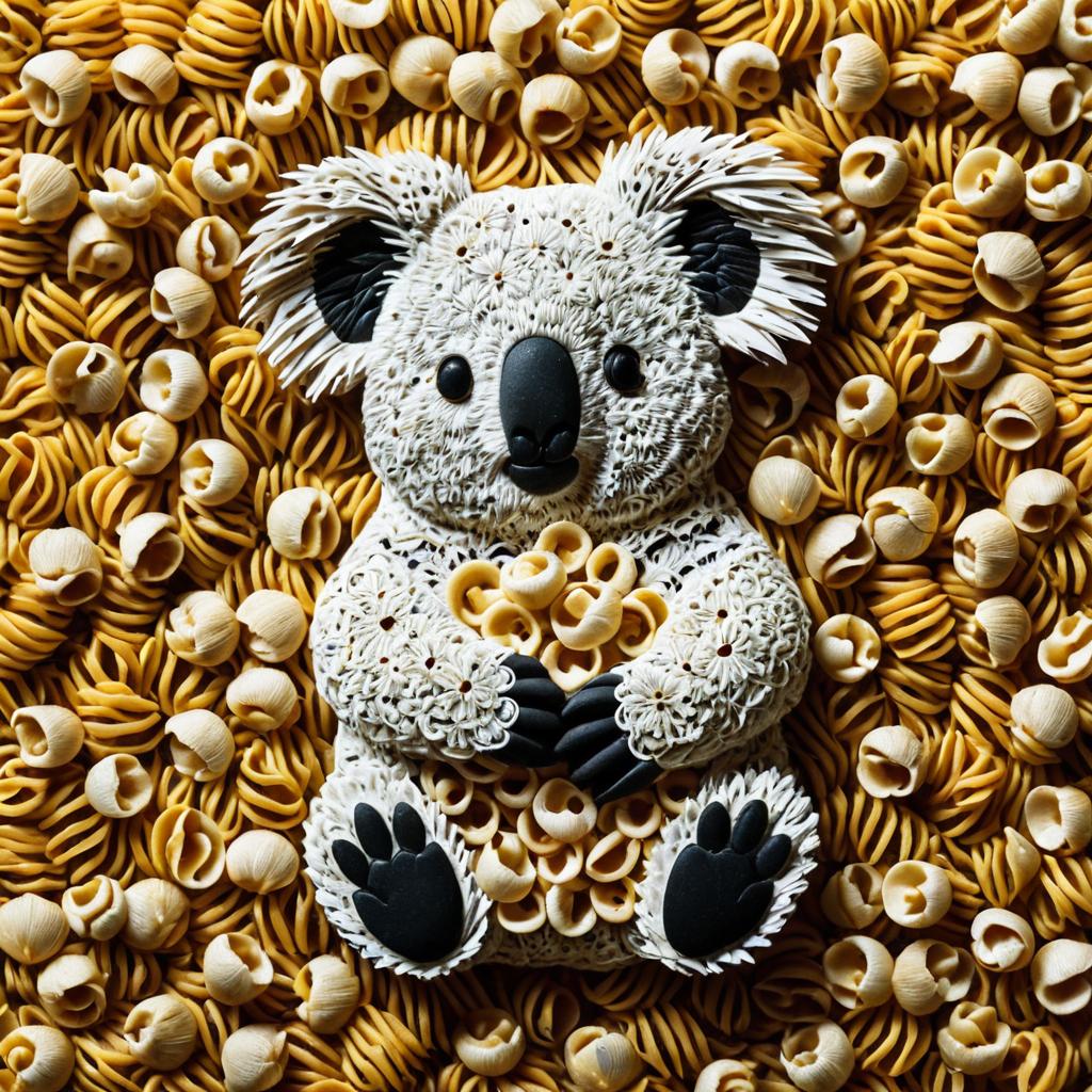 Artwork depicting an swan made entirely of cavatappi, highly detailed, realistic textures, intricate pasta shapes, artstation trending, professional quality