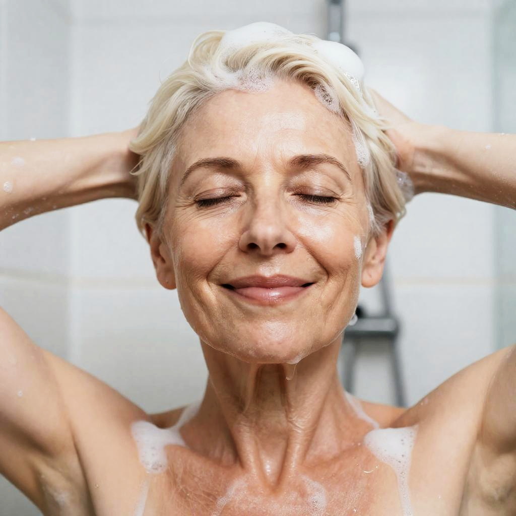 Middle-aged man with gray beard, wearing black and red checkered bathrobe, holding a beer in each hand, arms outstretched, smiling. Kitchen background with hanging pots, stove, bowl on counter. Man centered, slightly to the left. Casual, relaxed atmosphere.