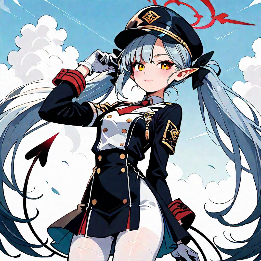 Anime Girl in Conductor Uniform with Pointy Ears