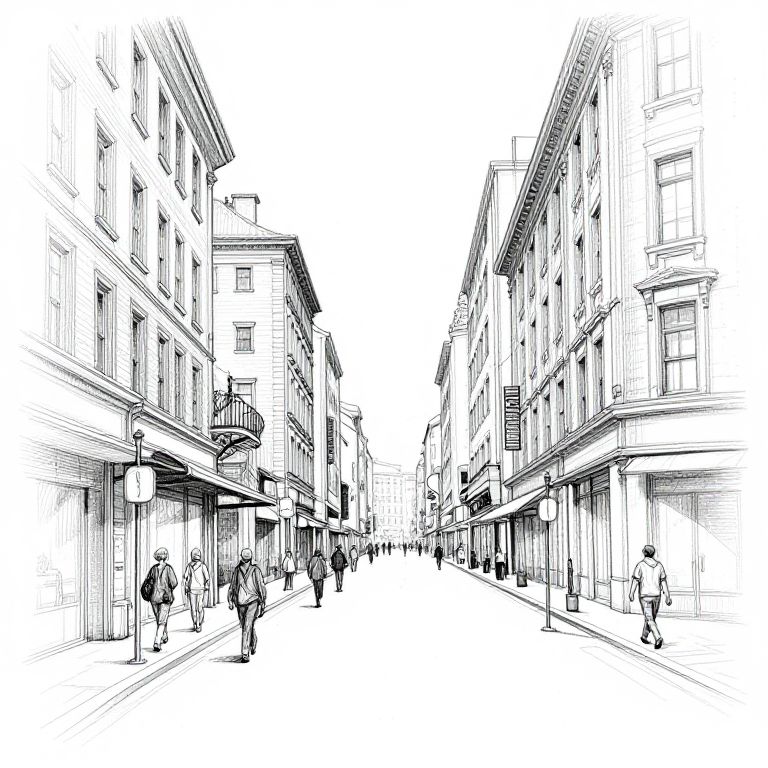 Urban Street Scene Outline Sketch