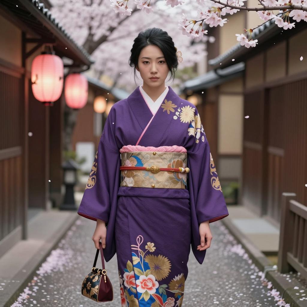 Elegant Asian Woman in Black Kimono