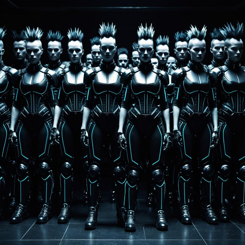 Row of Redhead Humanoid Black Androids