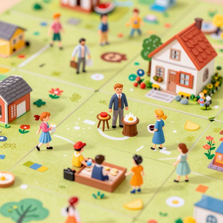 Editorial Illustration macro extreme close-up photograph of a cottagecore joyful crime scene, bright, pastel, rotoscope, Joseph Cornel , multi-layer boardgame,