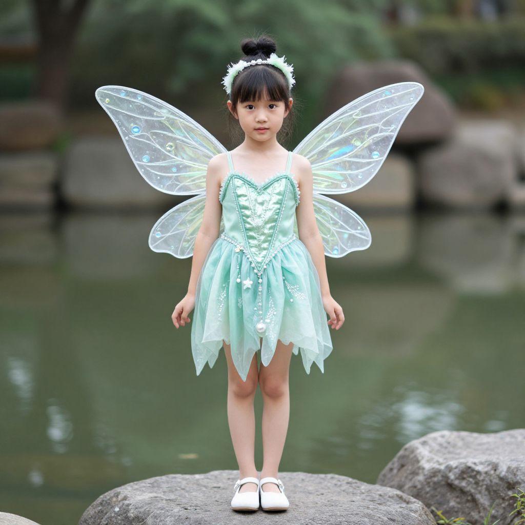 Tinkerbell Water Fairy Costume, girl dressed in fairy costume standing in front of a pond