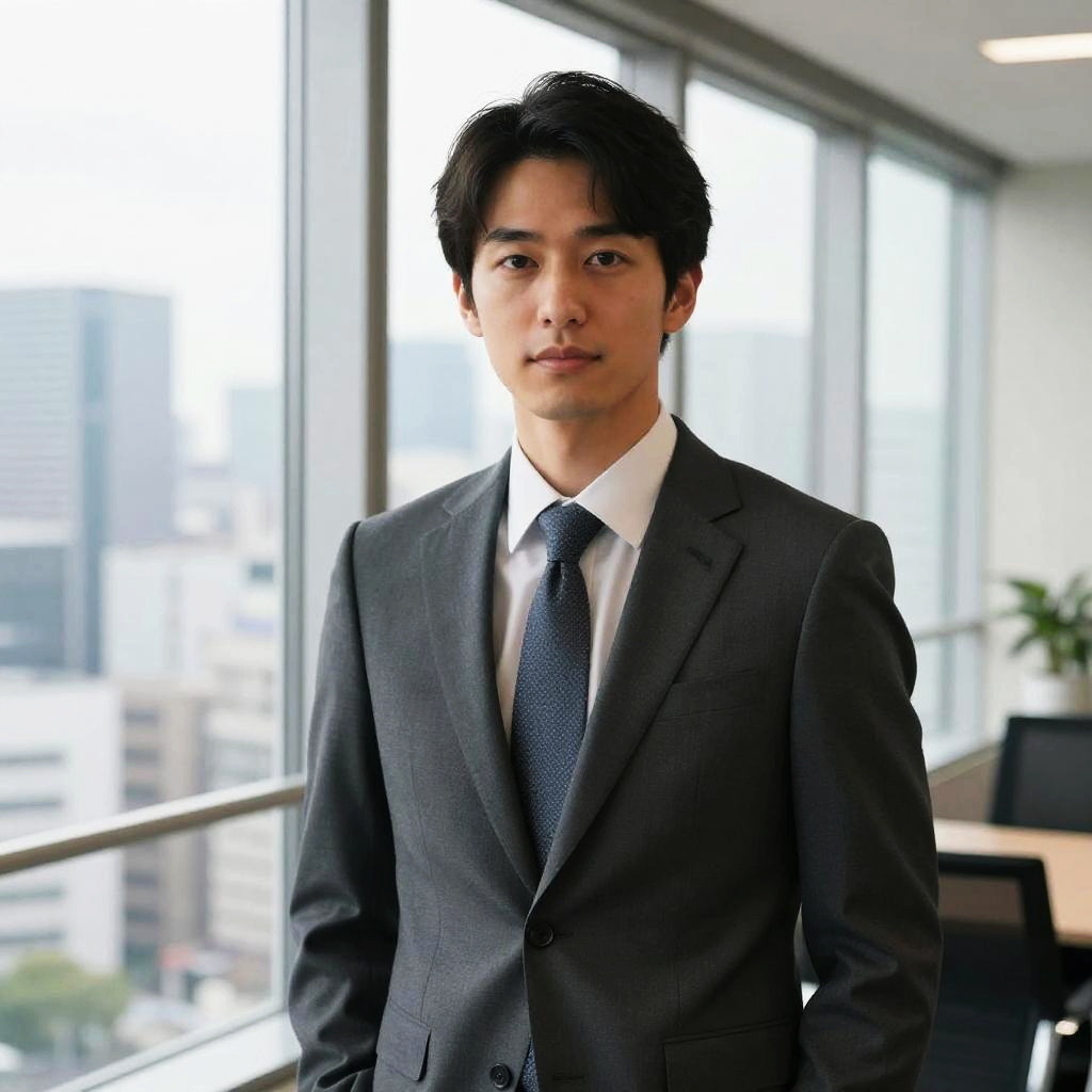 Stylish Japanese Businessman in Modern Office