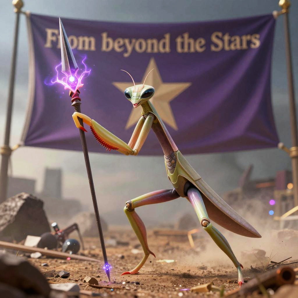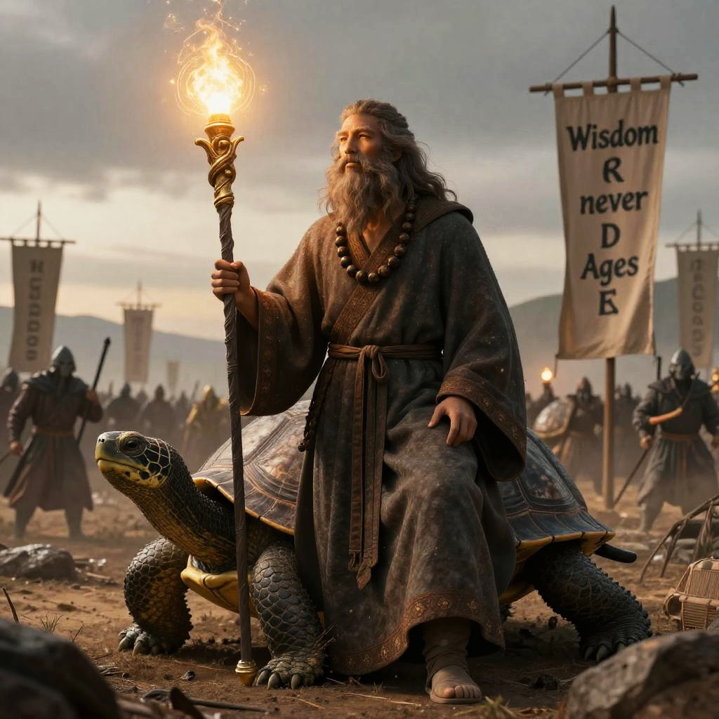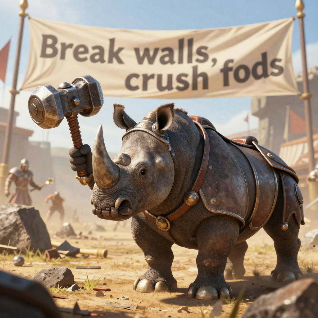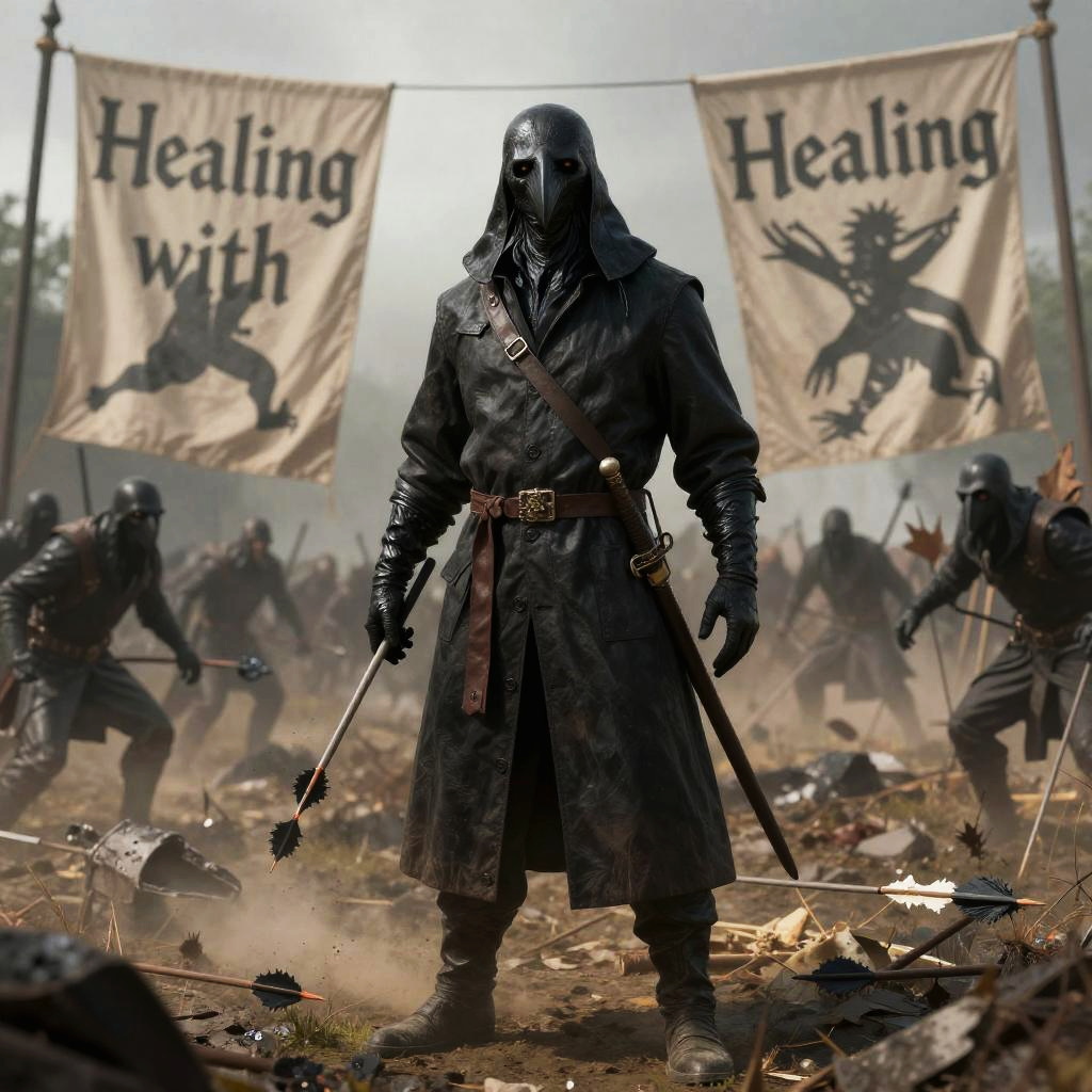 A viking raven with battle axe on a battlefield with a banner that says Valor in every strike.