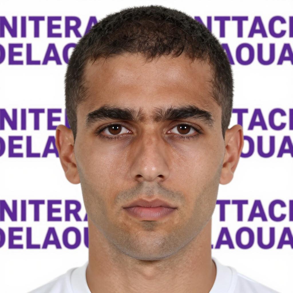 Black and white photograph of a young man with a close-cropped haircut, intense expression, wearing a Nike tracksuit with a zipper. He stands in a narrow hallway with doors on both sides, light coming from the left.