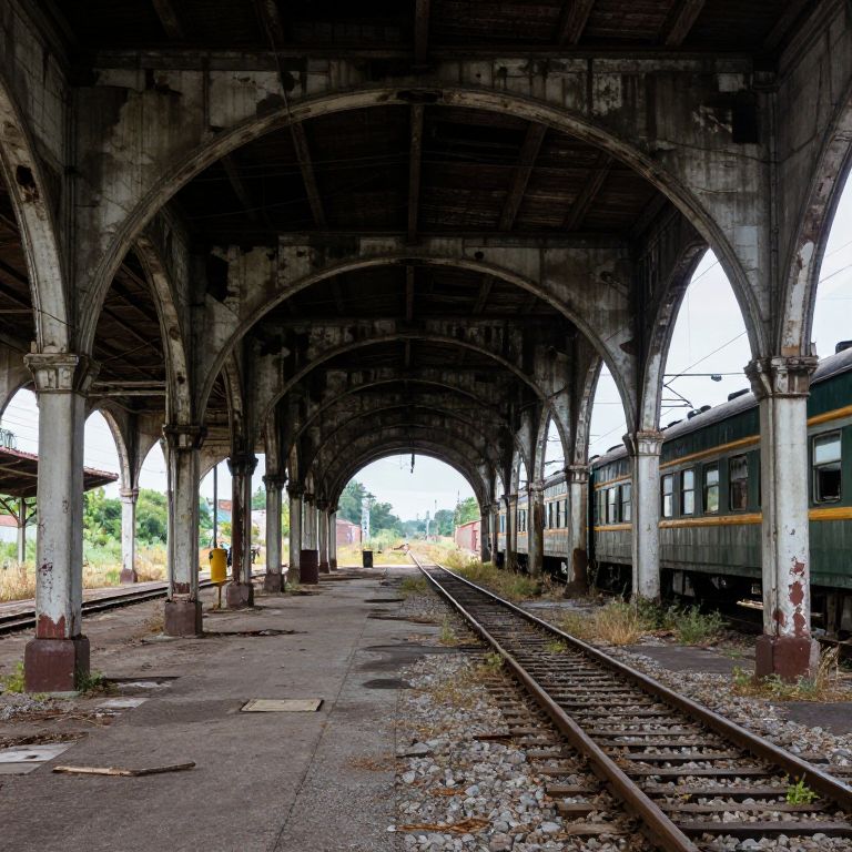 Time whispers secrets through the decaying arches of an abandoned train station, where the relentless march of hours is both a reminder of transience and a silent echo of forgotten journeys.
